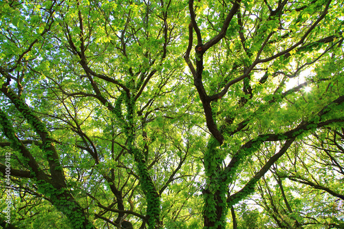 © takadahirohito, Obraz premium 森林 輝く太陽の光