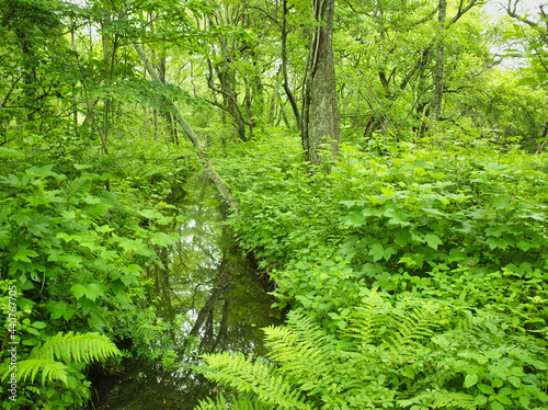 © K.Imai, Fototapeta premium 新緑に包まれる高原の森