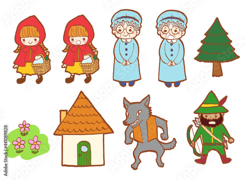 Obraz premium 赤ずきんちゃんのイラスト登場人物セット