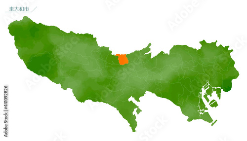 Obraz premium 水彩風の地図 東京都 東大和市