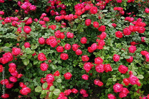 Fototapeta premium 一面の赤いバラ 薔薇の花 背景素材 山下公園(横浜市)