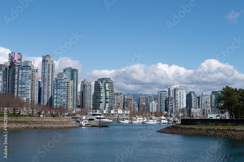 © photok, Fototapeta premium バンクーバーの爽やかな夏の青空と船と対岸のビル