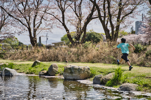 © 裕使 大嶽, Fototapeta premium 鴨を追いかける子供