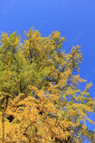 © misumaru51shingo, Fototapeta premium ほとんど黄葉したイチョウの大木