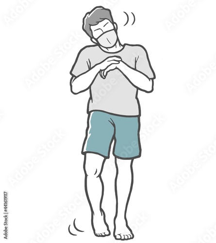 © Namiuchi Beroko , Obraz premium マスク 手首 足首 回し 準備体操 若い男性 裸足