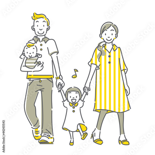 © fumi, Fototapeta premium 仲良し四人家族のお散歩イラスト