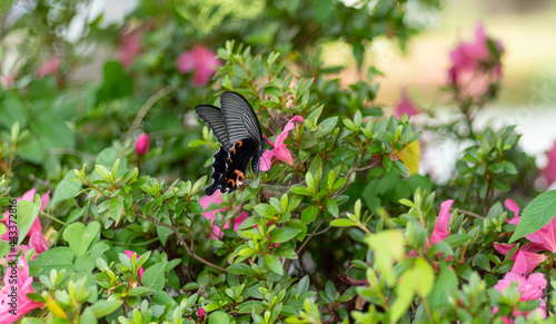 © rai, Fototapeta premium 花と黒い蝶