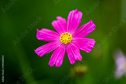 © bluebellivy, Fototapeta premium 草木の中のピンクのコスモスのアップ 背景 壁紙