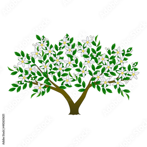 © piyo piyo , Obraz premium 白い花が咲く柑橘類の樹
