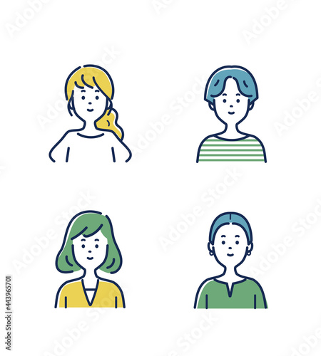 © 2F_komado, Naklejka premium 若い女性の表情のイラスト素材セット