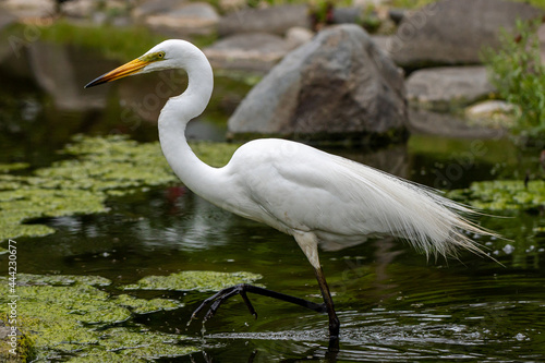 © MORNINGS, Fototapeta premium 池の中を歩く白鷺
