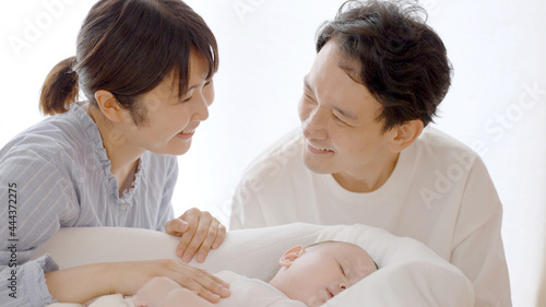 Fototapeta premium 赤ちゃんを見守る両親