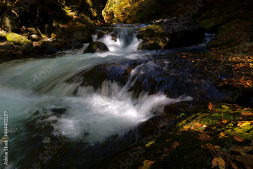 Naklejka premium 秋の山の奥にある清流の風景