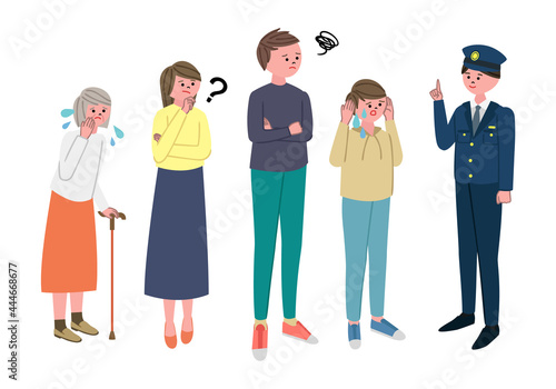 © kimomaru, Obraz premium 困っている人々と警察官のイラストセット