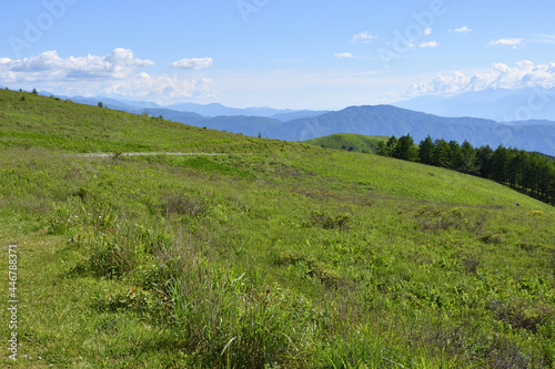 Fototapeta premium 霧ヶ峰,日本百名山,百名山,湿地,新緑,緑,森,ハイキング,自然,登山,夏,夏山,夏空