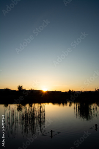 © kinpouge, Fototapeta premium 美しい夕空を映す池の水面