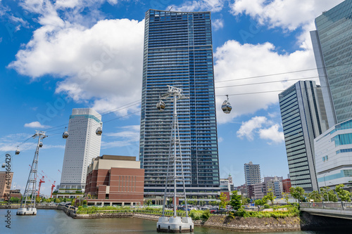 Obraz premium 横浜エアキャビン(ロープウェイ)のある横浜みなとみらいの風景