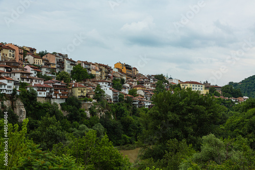 Obraz premium ブルガリア ヴェリコ・タルノヴォの丘に広がる旧市街の町並み