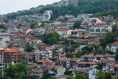 Obraz premium ブルガリア ヴェリコ・タルノヴォの丘に広がる旧市街の街並み