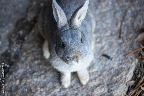 Fototapeta premium 広島県大久野島、欲しがるうさぎ。