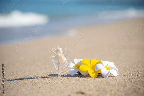 Obraz premium 砂浜とプルメリア