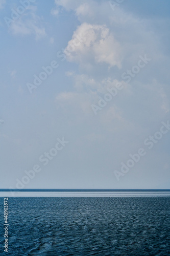 © TSmedstruct, Fototapeta premium 青い空の下の湖の水平線