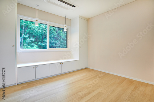© 이 상신, Obraz premium 가구가 없는 빈방과 창문 밖으로 보이는 풍경