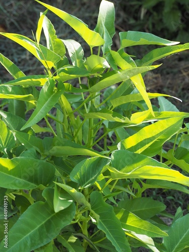 Obraz premium 夏の畑で成長する空心菜