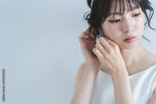 © peach100, Fototapeta premium ウェディングドレスを着た花嫁