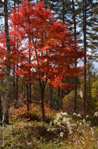 Fototapeta premium 開田高原 秋 紅葉
