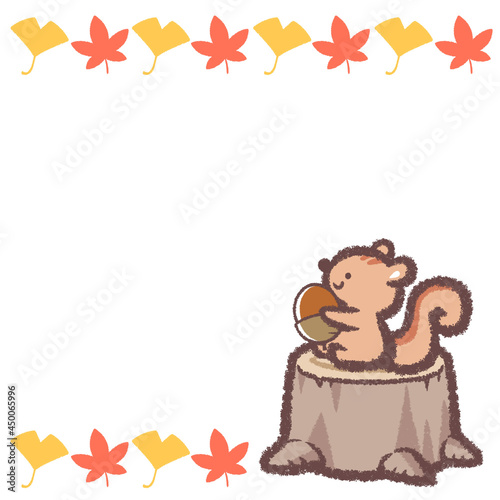© kino, Obraz premium リスと銀杏と紅葉のフレーム
