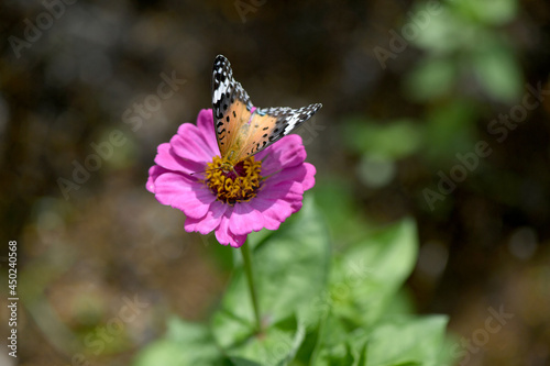 Obraz premium ツマグロヒョウモンチョウと百日草の花