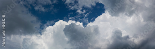 © lemacpro, Obraz premium 青空を背景に白く輝く雲 積乱雲 クラウドスケープ パノラマ 日本