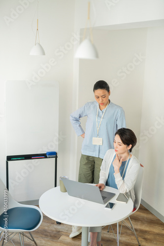 Obraz premium 先輩に業務を教わる女性