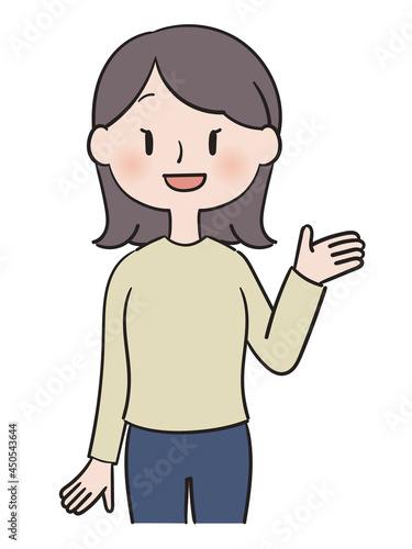 © アサツミヒロイ, Obraz premium 片手をあげて笑う私服女性