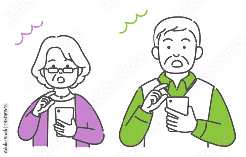 Obraz premium イラスト素材 シニア 夫婦 中高年 スマホ びっくり
