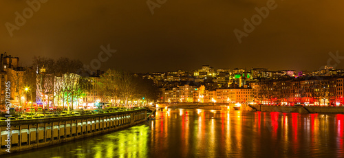Fototapeta premium フランス 光の祭典でライトアップされたリヨンのソーヌ川沿い街並み