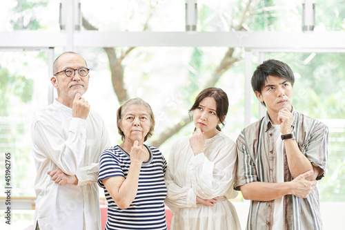 Obraz premium 悩む若夫婦と老夫婦