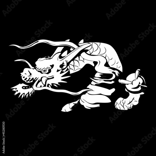 © 亮介 河嶋, Fototapeta premium 玉を持った龍のシルエットのイラスト