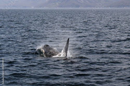 Fototapeta premium 【北海道】知床の海に回遊する野生のシャチ(北海道羅臼沖)
