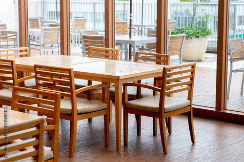 Obraz premium フードコートのテーブルとイス