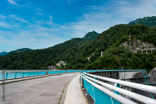 Obraz premium 黒部ダムの歩道と山並み