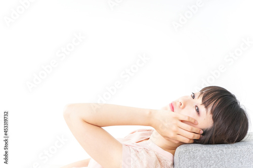 Fototapeta premium 体調不良で横たわる若い女性