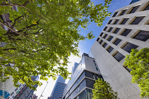 © taka, Fototapeta premium 爽やかな朝の光に照らされた東京のビル群