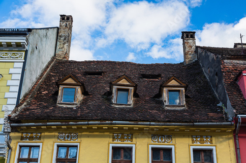 © pespiero, Fototapeta premium ルーマニア トランシルヴァニア地方のシギショアラのコボコした屋根の民家