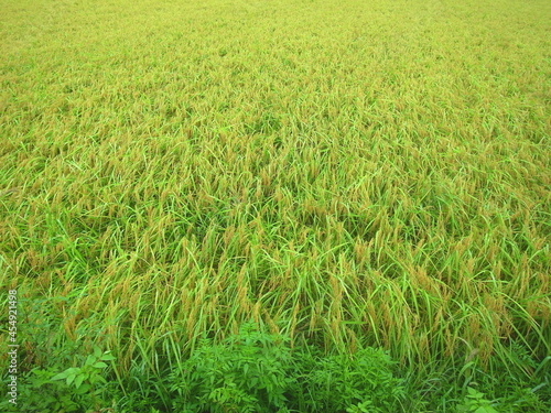 © smtd3, Obraz premium 雨に濡れる豊作の稲のある田圃風景