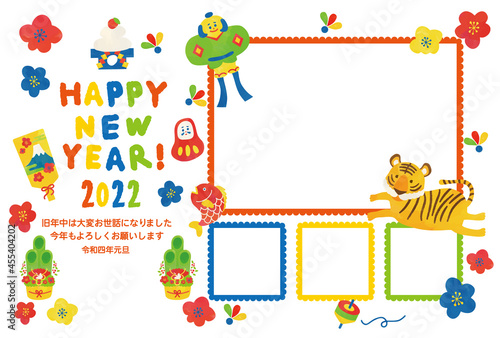 Obraz premium 2022年 年賀状 カラフル水彩タッチ トラフォトフレームデザイン