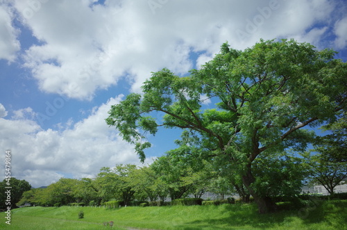 © kuki stock, Fototapeta premium 大空と大きな木の公園で
