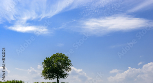 © blew_f, Obraz premium 晴れた日の青空バックに緑の木