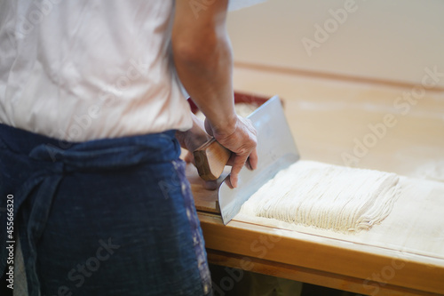 © yamasan, Obraz premium そばを切る男性の手元